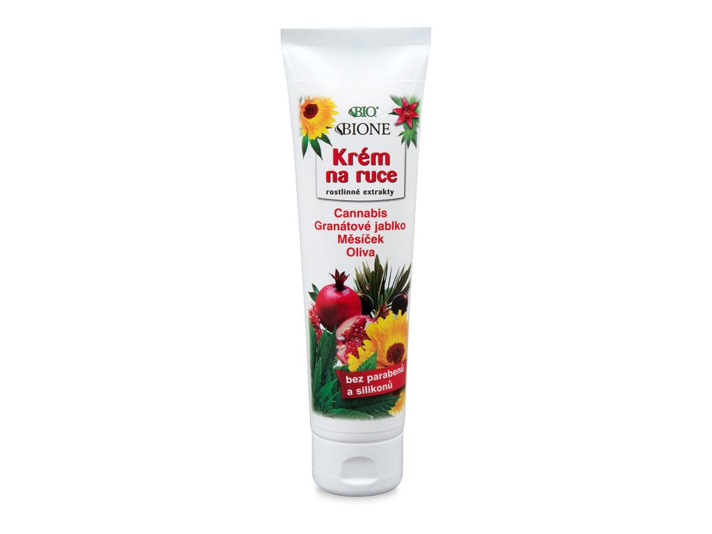 Krém na ruky obsahuje olivový olej, olej zo siateho konope, šťavu z granátových jabĺk a extrakt z nechtíku lekárskeho a konope. Dodáva pokožke radu antioxidantov a biominerálov. Krém využíva moderný akrylátový emulzný systém a teda je veľmi jemný a nedráždivý. Rýchlo sa vstrebáva a zanecháva príjemným nemastný pocit. Krém je vyrobený v BIO kvalite pre Vašu krásu a zdravie. Krém na ruky s rastlinným extraktom je určený pre celú rodinu. Krém je stredne tučný, výživný, ochrannýa hydratačný s univerzálnym použitím pre všetky typy pokožky.