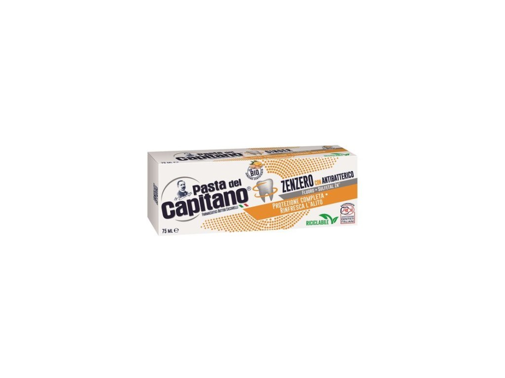 Zubná pasta Pasta del Capitano ZENZERO GINGER so zázvorom a s antibakteriálnym účinkom.
