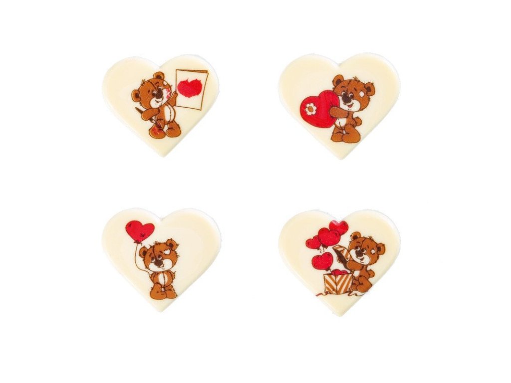 Čokoládová dekorácia Srdcia s medvedíkom 5x4,6cm 15ks