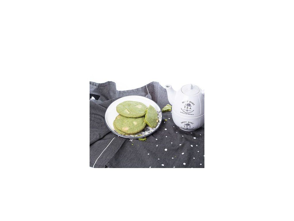 Zloženie: PŠENIČNÁ múka, glukózový sirup, PŠENIČNÝ škrob, sušené odstredené MLIEKO, kypriaca látka: E450, E500, sušený zelený čaj v peášku 0,7%, soľ, aróma, farbivo, E101, E141