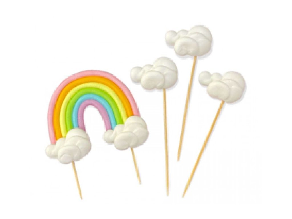 Cukrová dekorácia dúha a obláčiky sada zápichov