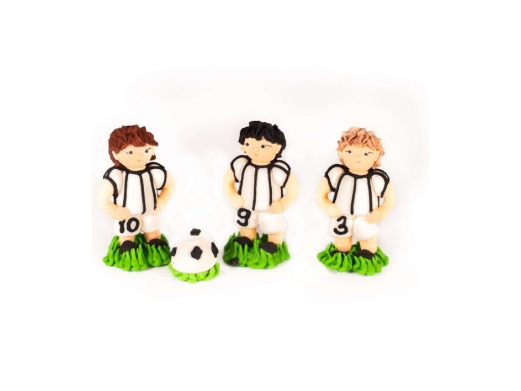 Cukrová dekorácia na tortu Futbalisti. V balení 3ks plus lopta.
