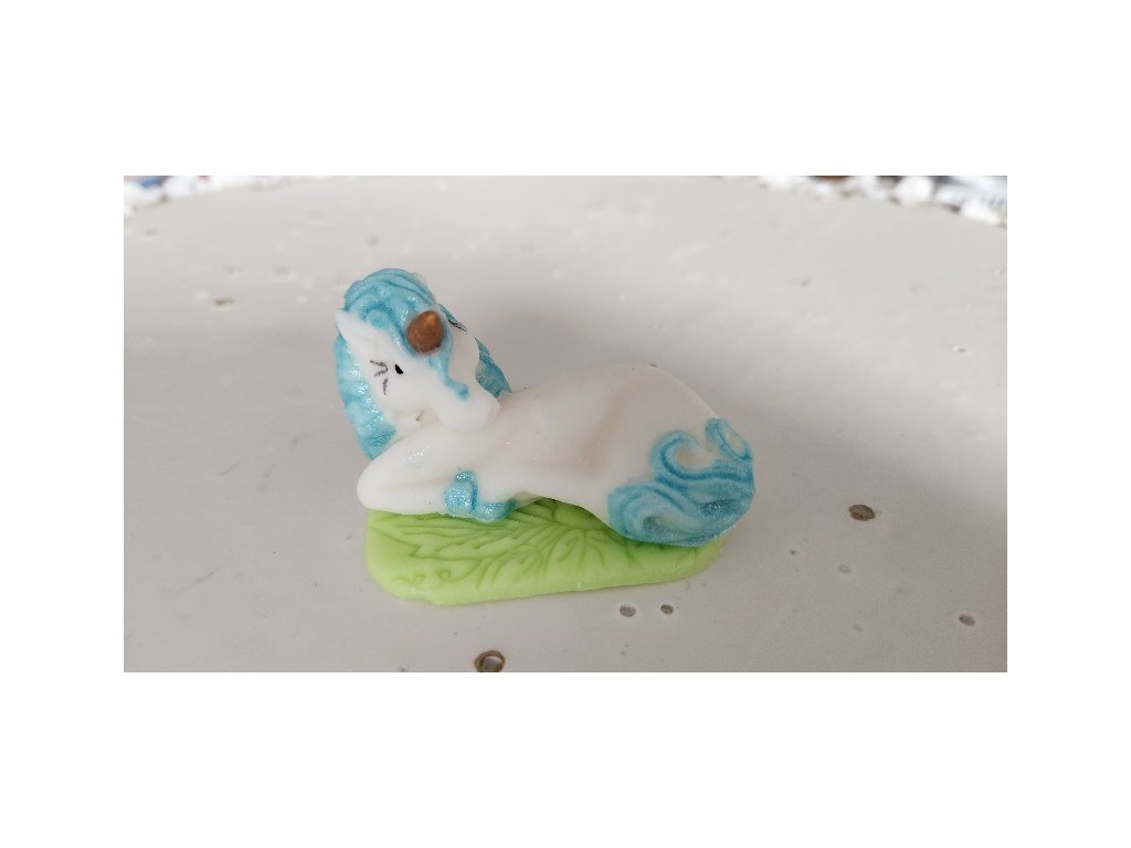 Cukrová dekorácia jednorožec s modrou hrivou