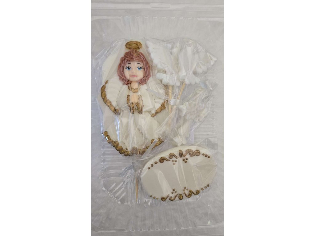 Zloženie: pbiely cukor, VAJEČNÝ albumín, regulátor kyslosti E330, zahusťovadlo E412, konzervant kyselina sorbová (E200), potravinárska artóma vanilka, potravinárske farbivo: E133, E102, E110, E132, E124, E170,