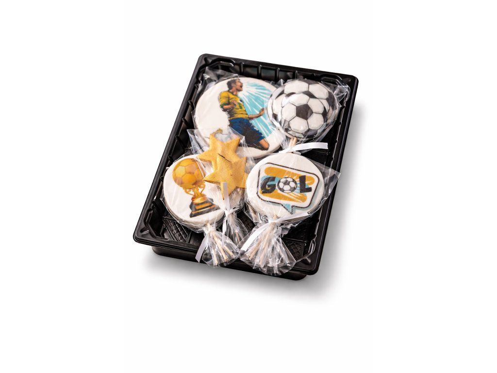 Zloženie: biely cukor, VAJEČNÝ albumín, regulátor kyslosti E330, zahusťovadlo E412, konzervant kyselina sorbová (E200), potravinárska artóma vanilka, potravinárske farbivo: E133, E102, E110, E132, E124, E170,
