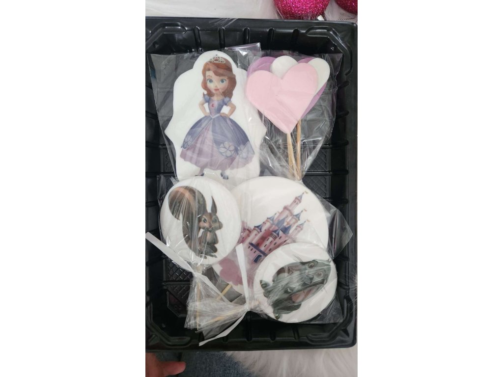 Zloženie: biely cukor vaječný albumín, glukózový sirup, cukrárenský tuk, kryštalická glukóza, glycerín, zahusťovadlá E 412, E 415, E 466, kukuričný škrob, modifikovaný kukuričný škrob, regulátor kyslosti E 330, konzervant E 200, potravinárska aróma Vanilka ", potravinárske farbivo: Е 102, Е 110, Е 133, Е 132, Е 170. Obsahuje farbivo (E 102, E110), ktoré môžu mať nepriaznivé účinky na činnosť a pozornosť detí.