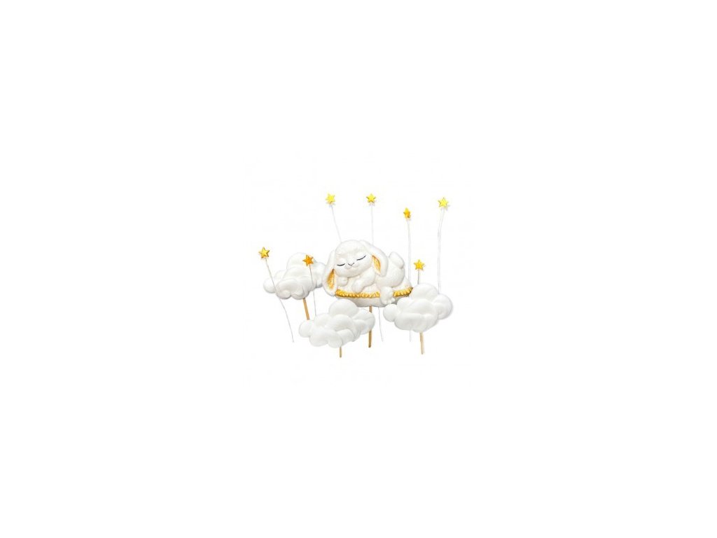 Cukrová dekorácia na tortu Zajačik a obláčiky.