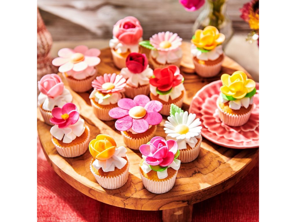 Nechajte rozkvitnúť svoje maškrty s jedlými kvetmi FunCakes! Tieto kvety sú vyrobené prevažne z kukurice, vďaka čomu sú svieže a pevné. S týmito kvetmi pripravenými na použitie dodáte svojim maškrtám šťastný a pôsobivý vzhľad bez námahy. Kvety sú dostupné v 9 rôznych prevedeniach, ktoré sa dajú skvele kombinovať do vlastných farebných kombinácií. Choďte na veľkú kvetinovú explóziu na torte alebo jemný dotyk na koláčiky či pečivo. Tieto kamélie sú v balení po 5 kusoch.
