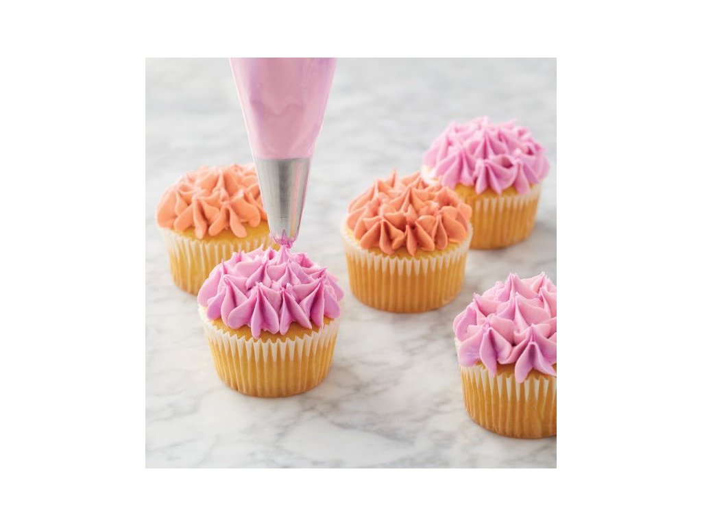 Kovový zdobiaci hrot od Wilton na vytváranie obrysov, nápisov, bodiek, guličiek, korálikov, šnúrok, mriežok, čipiek. Jednotlivo balené v blistrovom balení (mykané) Vhodné do umývačky riadu. Tento tip funguje so štandardnými vreckami a spojkami. Pred prvým požitím a po každom použití opláchnite teplou vodou so saponátom.