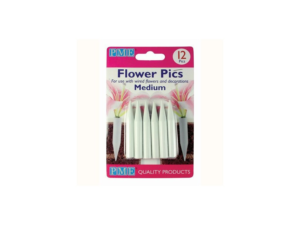 Vtlačte ich do koláča a naplňte čerstvými kvetmi. Kvetinové obrázky z PME tiež zaistia bezpečnosť vašej torty na použitie drôtov (pri použití falošných alebo jedlých kvetov).