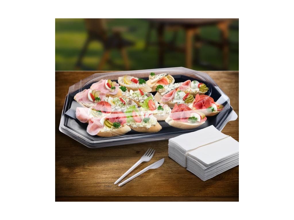 Podnos (rPET) oválny najvhodnejší pre rýchle hostiny, coffebreaky, obchodné stretnutia a oslavy. Vhodné pre reštaurácie, hotely, catering, výrobne studených mís a chlebíčkov.