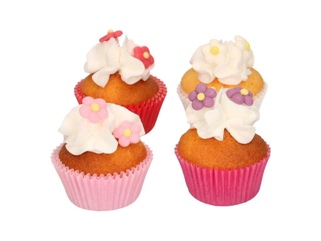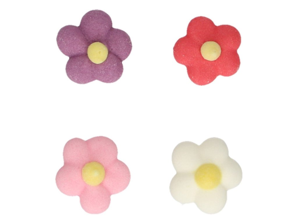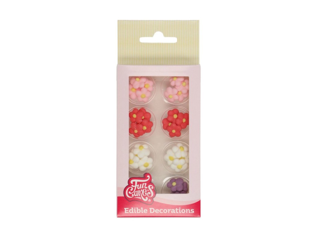 Táto FunCakes sada malých cukrových kvietkov je ideálna na zdobenie koláčikov, mini cupcakes alebo malých koláčikov. Sada obsahuje ružové, červené, biele a fialové kvety.