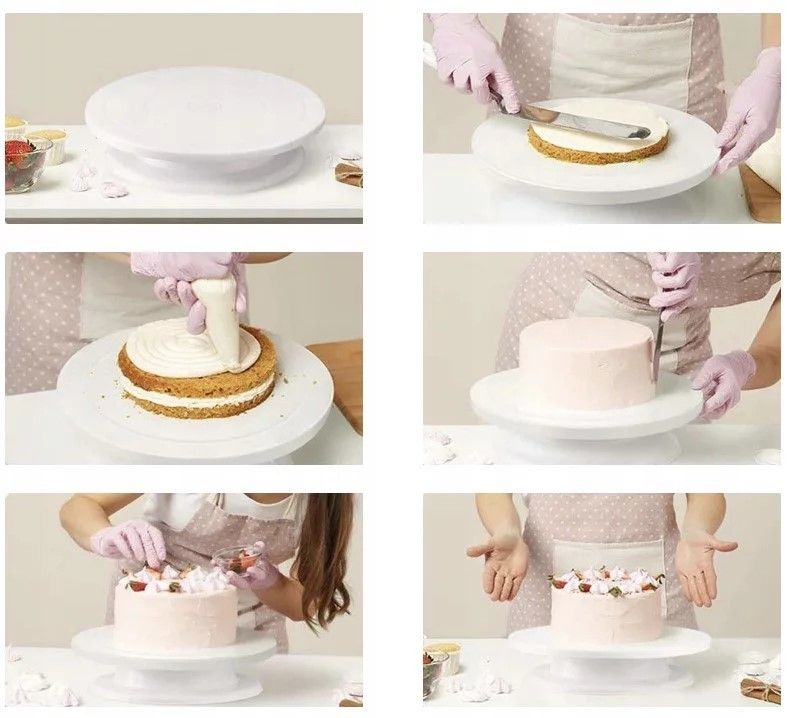 Vysoko kvalitný otočný stojan vám umožní ozdobiť torty na najvyššej úrovni. Umožňuje elegantné podávanie tort, zákuskov, ovocia a iného domáceho pečiva. Bol vyrobený s precíznosťou a zmyslom pre detail. Výrobky na ňom uložené nielen pekne vyzerajú, ale predovšetkým stabilne držia, takže máme vždy istotu, že sa nepoškodia. 2v1 – tanier sa voľne otáča v dvoch smeroch, čo výrazne uľahčuje všetky dekoratívne a cukrárske práce. Skvele sa hodí aj ako stojan alebo na servírovanie akéhokoľvek pečiva. Odnímateľná základňa – výrobok má odnímateľnú základňu, vďaka čomu sa ľahko čistí. Tanier na stojane nielen krásne vyzerá, ale je predovšetkým stabilný a ľahko sa prenáša aj s obsahom . Otočný – vďaka tomu, že tanier je otočný, torta sa bude veľmi ľahko ozdobovať.