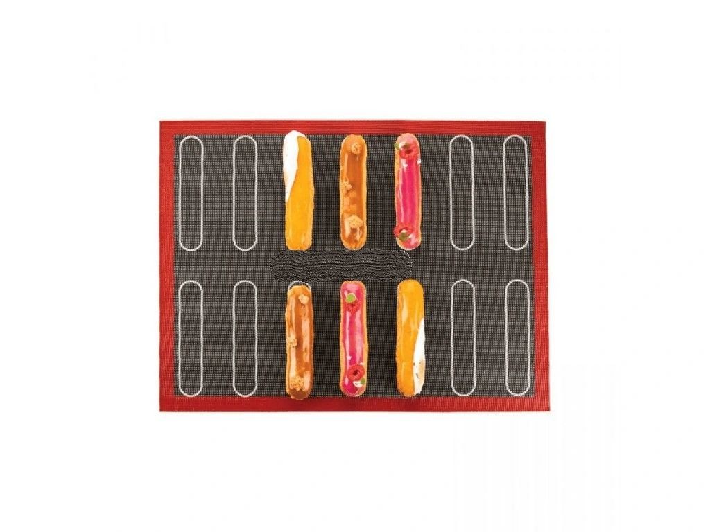 Silikonová podložka Eclair & Choux Mat Macarons je obojstranná - pripravíš na nej eclair, makrónky aj pusinky, a preto je vynikajúcim spoločníkom pri tvojom pečení. S jej pomocou dosiahneš vždy dokonalé výsledky. Silikonový materiál zabezpečuje jednoduché odlepenie z povrchu, čo ti ušetrí čas aj námahu pri čistení.