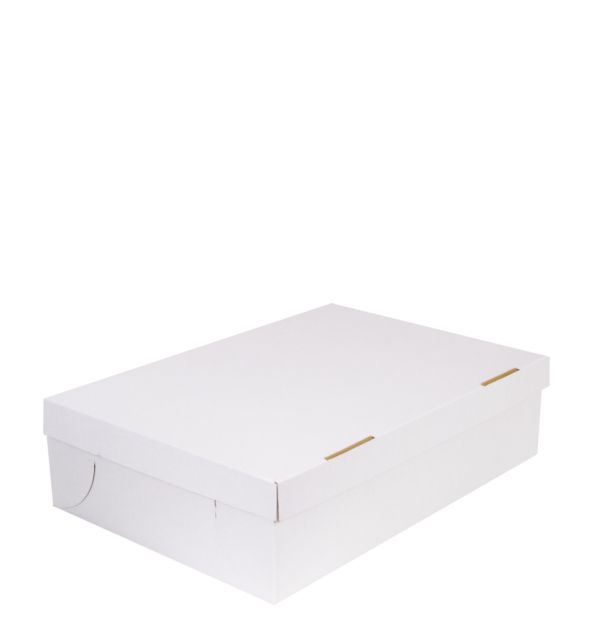 Krabička z vlnitej lepenky. Obaly sú vhodné najmä na bezpečnú prepravu väčšieho množstva zákuskov alebo torty. Vlnitá lepenka lepšie chráni koláče pred otrasmi a nepriazňou počasia.