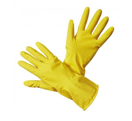 Latexové rukavice pre domácnosť s bavlneným prachom pre ľahké navliekanie. Dezén na dlani a prstoch napomáha bezpečnému uchopeniu predmetov.
