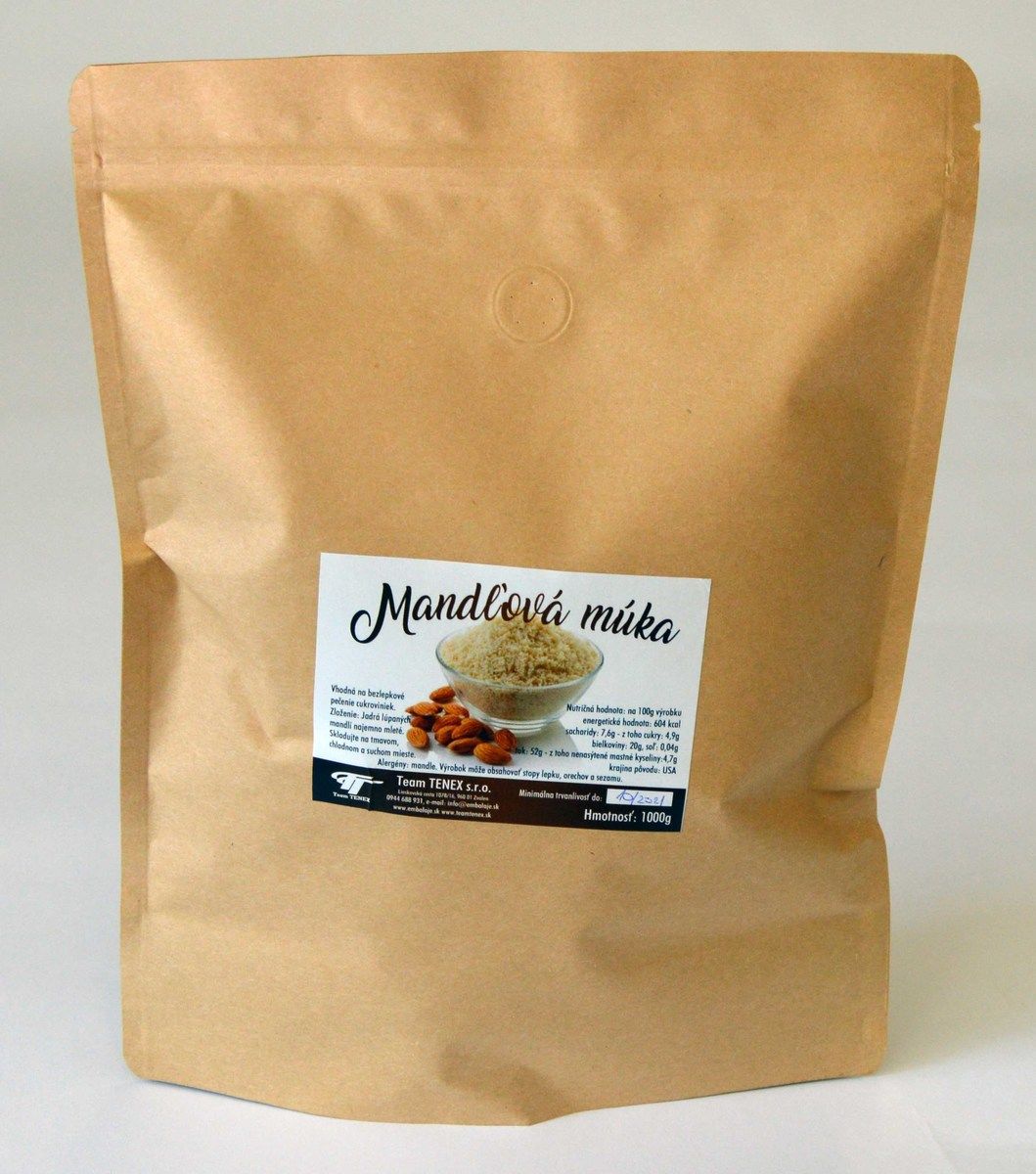 Zloženie: Jadrá lúpaných mandlí najemno mleté.