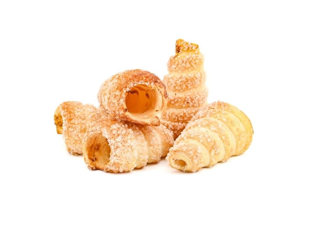Jemné, ľahké a chuťovo sladké lístkové kornútky sypané cukrom pripravené k okamžitému plneniu. Vhodné plniť sladkými náplňami.