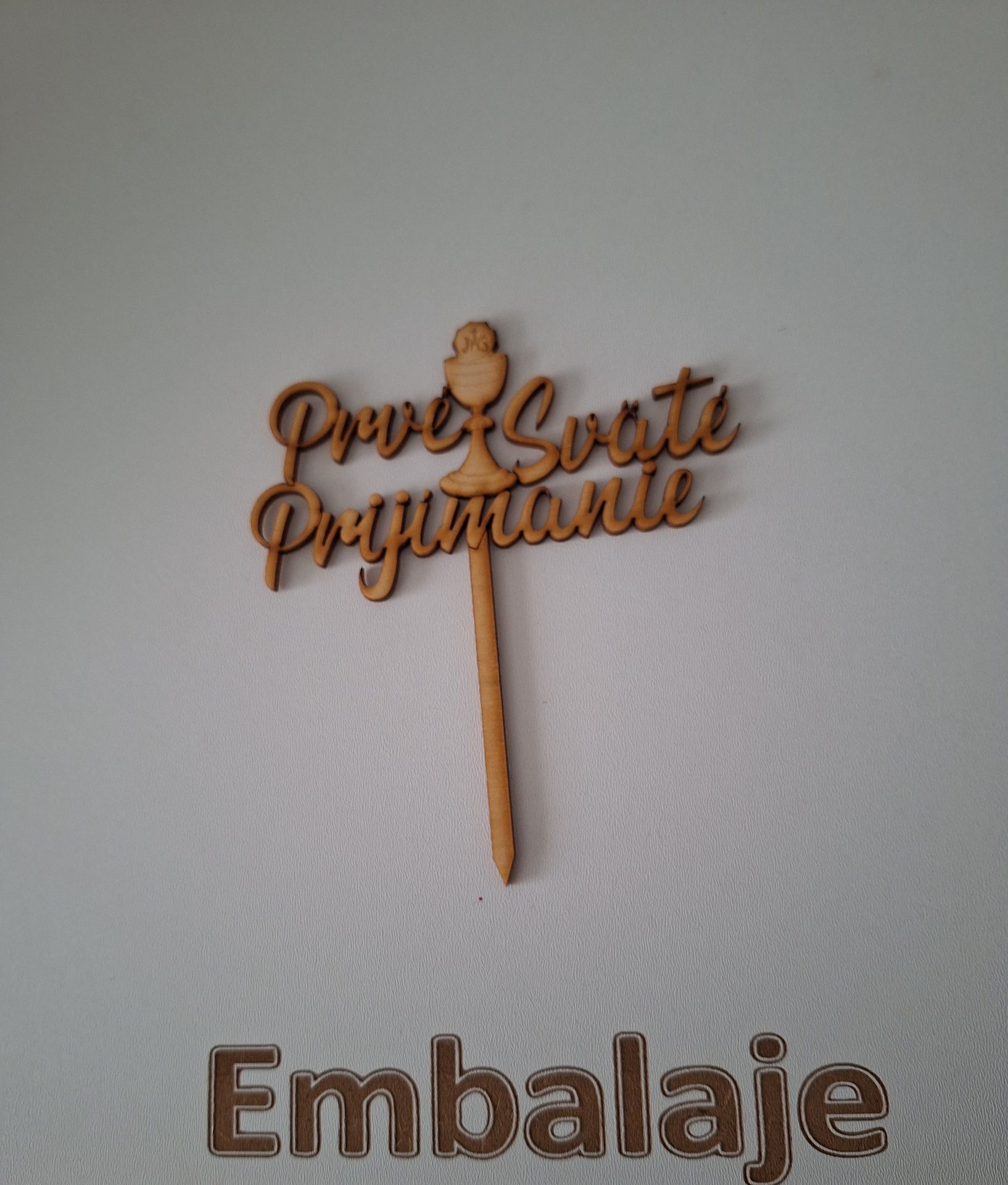 Prvé Sväté Prijímanie "nápis" - drevený zápich kus vxš: 13x11cm skladom Z0046S 2,68 € bez DPH 3,30 € s DPH