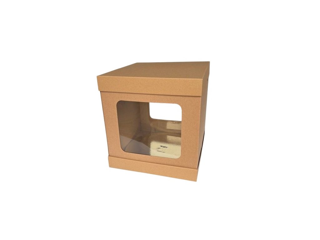 Krabica dvojdielna s okienkom ideálna na vysoké torty i dekoračné predmety. Krabica z pevnej lepenky je určená pre bezpečný prevoz a skladovanie. Dômyselná konštrukcia na jednoduchšie vyberanie tort. Vlnitá lepenka lepšie chráni obsah pred otrasmi a nepriazňou počasia.