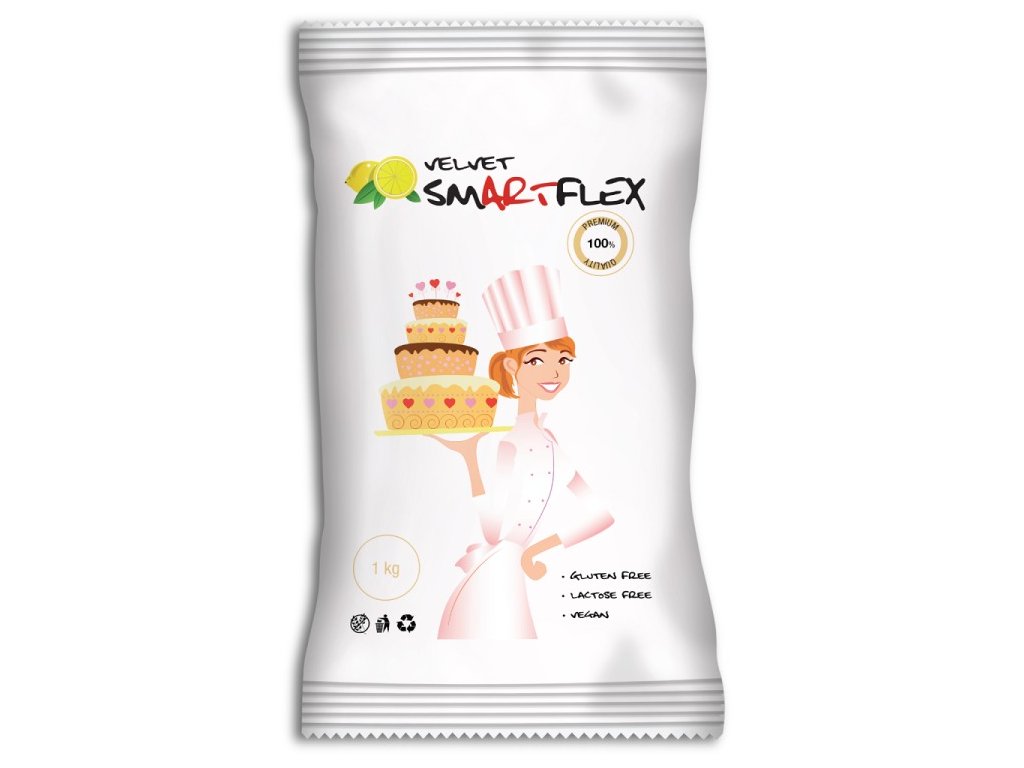 Snehobiela extra pružná hmota s vynikajúcimi vlastnosťami. Vhodná najmä na poťahovanie tort a modelovanie figúrok. Príchuť citrónová