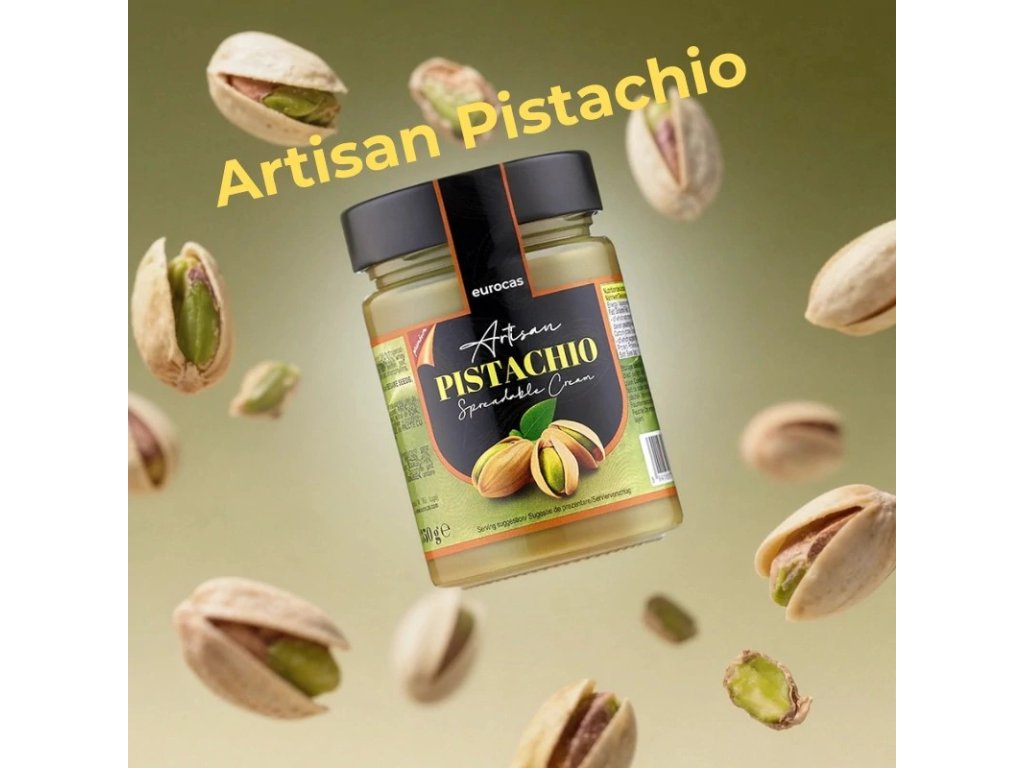 Zloženie: cukor, rastlinné oleje a tuky (slnečnicový, plne hydrogenovaný repkový olej, plne hydrogenovaný palmový olej), PISTÁCIE 20 %, srvátkový prášok ( MLIEKO ), sušené plnotučné MLIEKO , emulgátor: SÓJOVÝ lecitín , soľ, aróma, farbivá: medené komplexy chlorofylov a chlorofylínov, kurkumín.