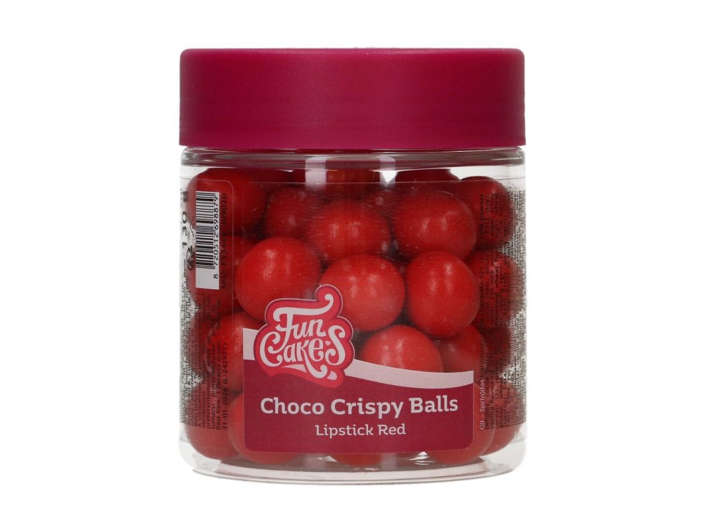 Chrumkavé čokoládové guľôčky FunCakes patria do nášho prémiového radu posýpok, ktoré spoznáte podľa špeciálnej nádoby s fialovým viečkom. Tieto veľké lesklé červené čokoládové guľôčky (ø15 mm) majú lahodný chrumkavý stred a cukríkovú vonkajšiu stranu, vďaka čomu sú nielen najkrajším, ale aj najchutnejším doplnkom vašich maškŕt. Čokoláda použitá na tieto guľôčky dodáva vašim maškrtám luxusnú chuť a trendy farebné kombinácie zaručujú elegantný vzhľad. Zvolíte si naše tematické kombinácie? Alebo radšej použijete jednofarebné farby na vytvorenie vlastných jedinečných dizajnov? V každom prípade si vychutnajte kreativitu s naším najprémiovejším radom posýpok!