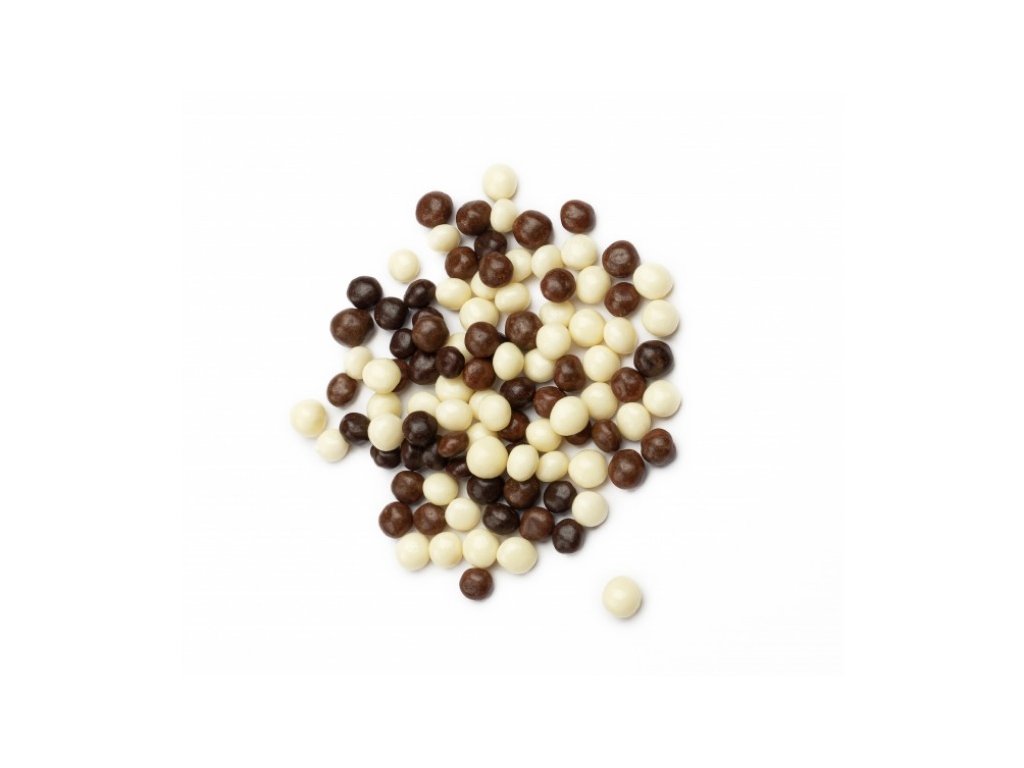 Čokoládová ozdoba v podobe chrumkavých guľôčok s príchuťou bielej, mliečnej a dezertnej čokolády. Ideálne na zdobenie tort a tort nielen na Valentína, ale aj ako svadobná výzdoba, sväté prijímanie, ku Dňu matiek a ku dňu starých mám a starých otcov.