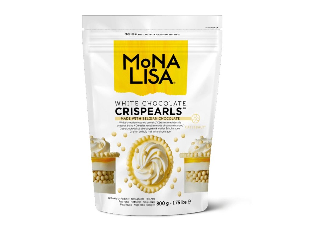 Dekoračné posypové guličky Crispearls ™ - Sušienková zmes obalená v bielej čokoláde, 0,8 kg, CHW-CC-CRISPE0-02B, je zmes miniatúrnych posypových guľôčok v bielej čokoláde, ktoré majú vo vnútri chrumkavú sušienkovou zmes. Sú vhodné na zdobenie nápojov s penou, dezertov, koláčov a pečiva.