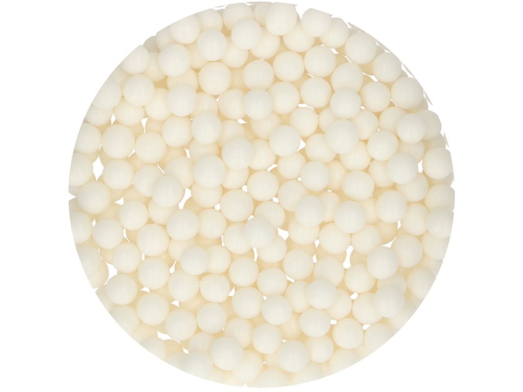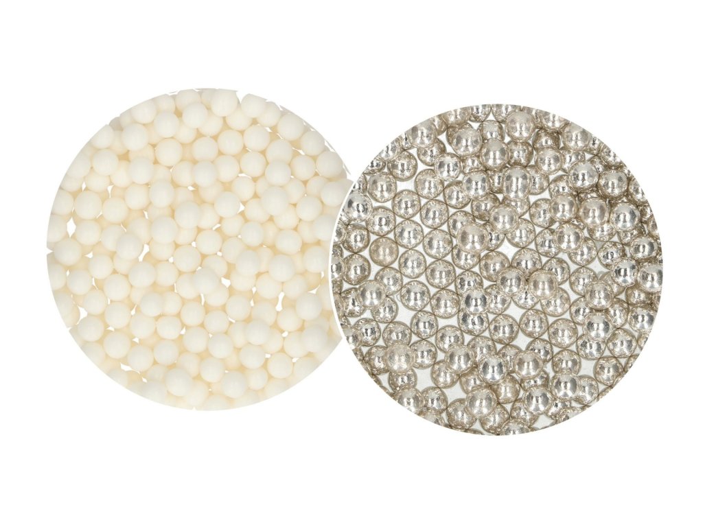 FunCakes cukrové perly, jedlé vo veľkosti 8mm. S týmito cukrovými perlami je možné použiť veľa rôznych akcentov zdobenia, napríklad na kvety alebo retiazku/lem okolo torty. Tento produkt je certifikovaný Halal. Skladujte pri teplote 8°C až 24°C v suchom prostredí.