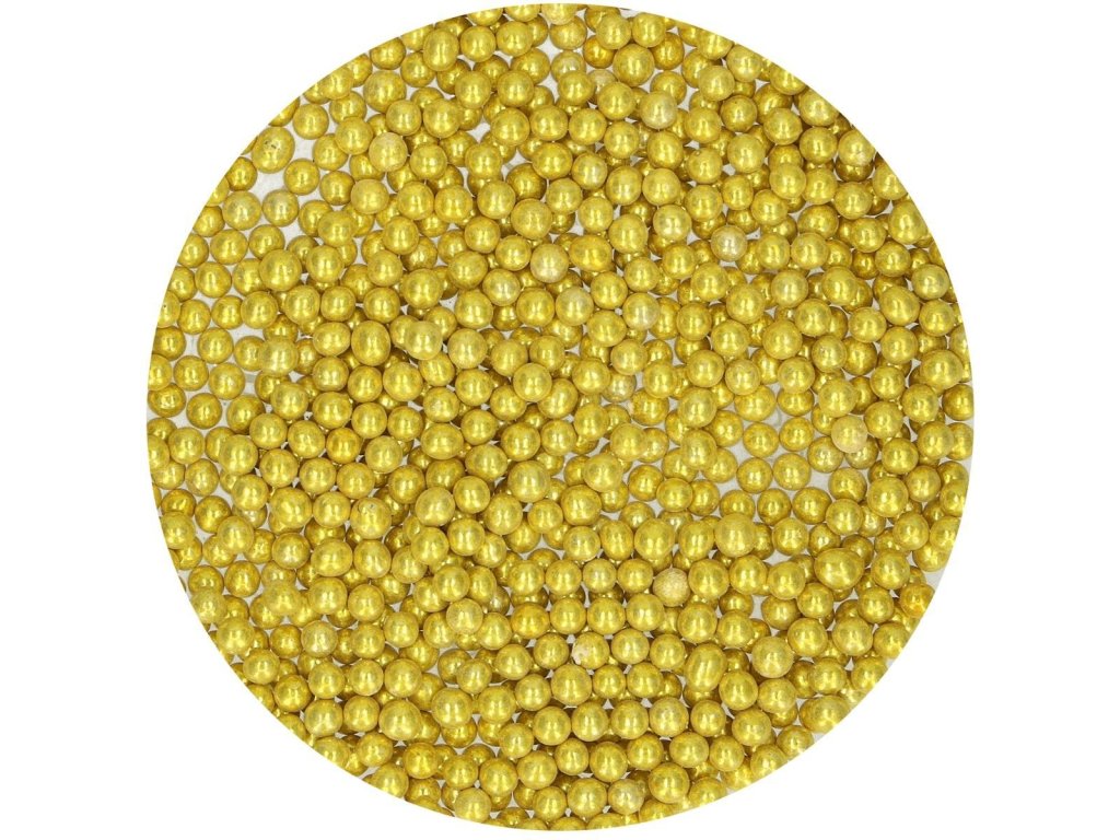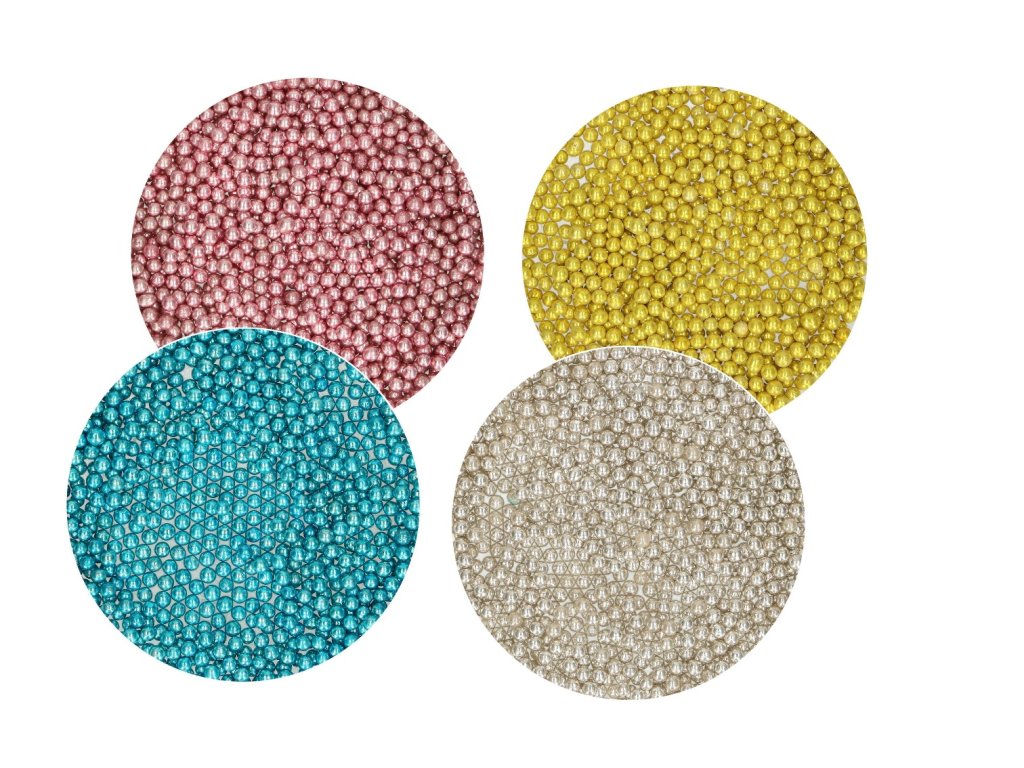 Cukrové jedlé metalické perly vo veľkosti 4 mm. S týmito cukrovými perlami je možné použiť veľa rôznych akcentov zdobenia, napríklad na kvety alebo retiazku/lem okolo torty.
