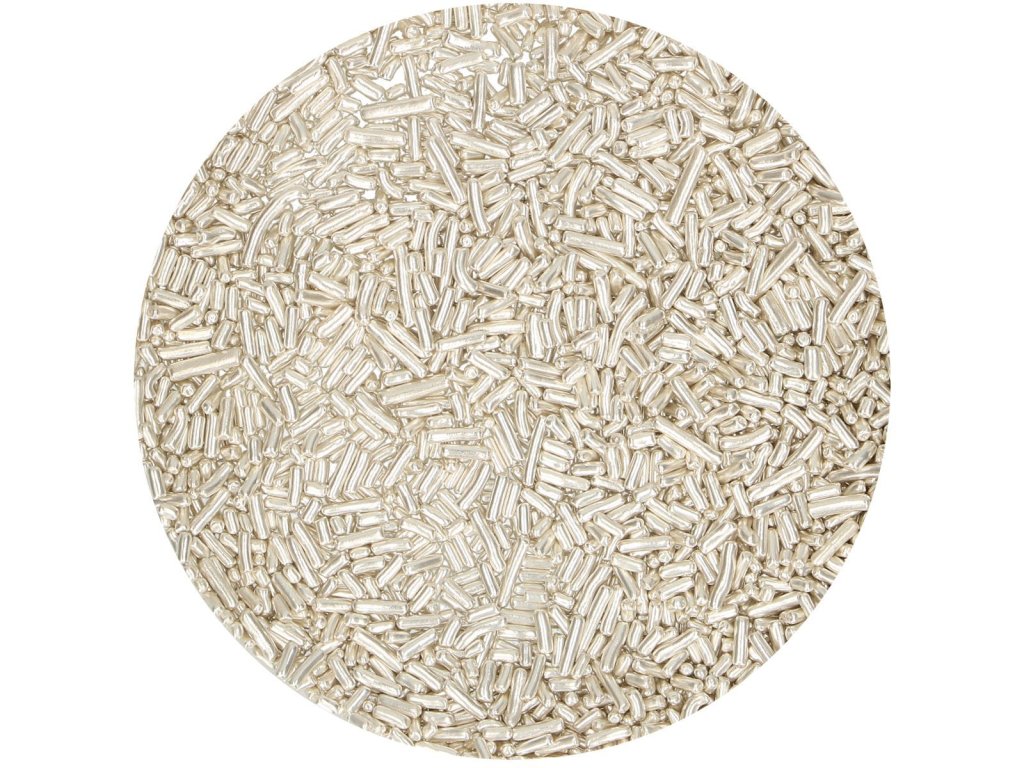 S metalickou striebornou FunCakes Sugar Strands môžete svojim výtvorom dodať luxusný vzhľad. Posypte nimi nejaké špirály alebo ich použite na ozdobenie torty. Skvelé na prázdniny.
