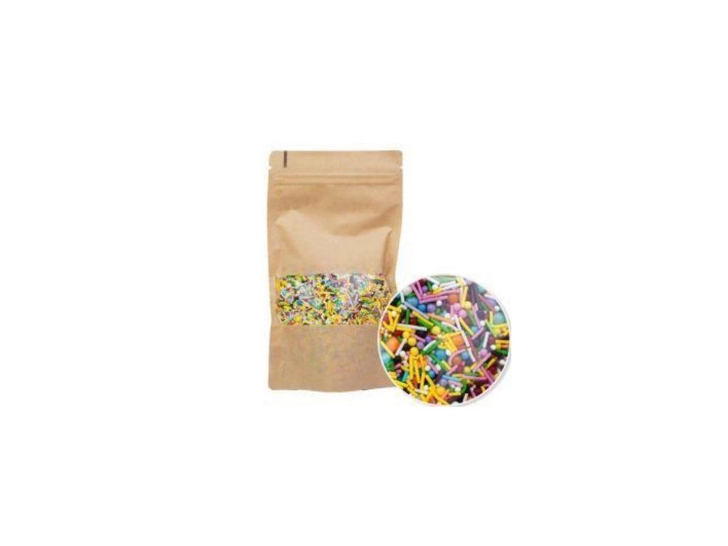 Zloženie: biely cukor, kukuričný sirup, dextróza, triglyceridy, kukuričbý škrob, dextrín, PŠENIČNÁ múka, melasa, nafúknutá ryža, ryžová múka, rafinovaný palmový olej, melasa, SÓJOVÝ lecitín, stearát horečnatý E572, karnaubský vosk E903, leštiace látky: arabská guma E 414, šelak E904, etanol, rastlinný kokosový olej, protihrudkujúca látka: mastenec E553b, zahosťovadlo: CMC E466, vanilková aróma, Farbivá: E102, E122, E124, E131, E133, E174. Obsahuje farbivo E102, E122, E124, ktoré môže mať nepriaznivý vplyv na činnosž a pozornosť detí. Obsahuje LEPOK