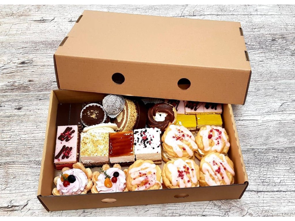 Prepravka dvojdielna ideálna na prevoz zákuskov, chlebíčkov či balenie zásielok. Krabica z pevnej lepenky je určená pre bezpečný prevoz a skladovanie. Vlnitá lepenka lepšie chráni koláče pred otrasmi a nepriazňou počasia.