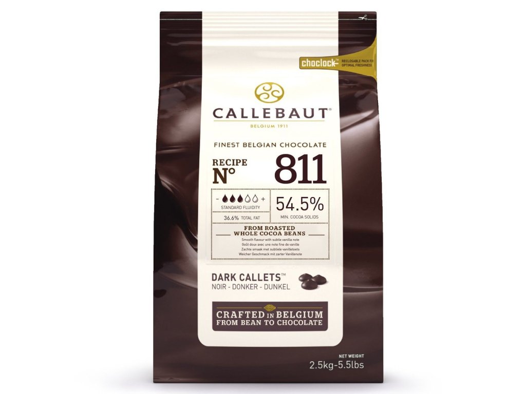 Callebaut Callets Dark 811 sú vyrobené z najkvalitnejšej belgickej čokolády a obsahujú 54 % kakaa. Dukátiky sú tvarované na dokonalé topenie. Čokoláda má vyváženú horkú chuť kakaa.