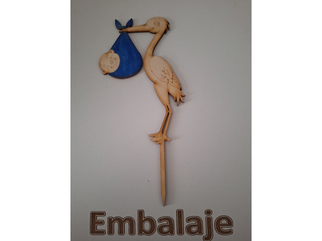 Drevený zápich Bocian&dieťa modré maľovaný