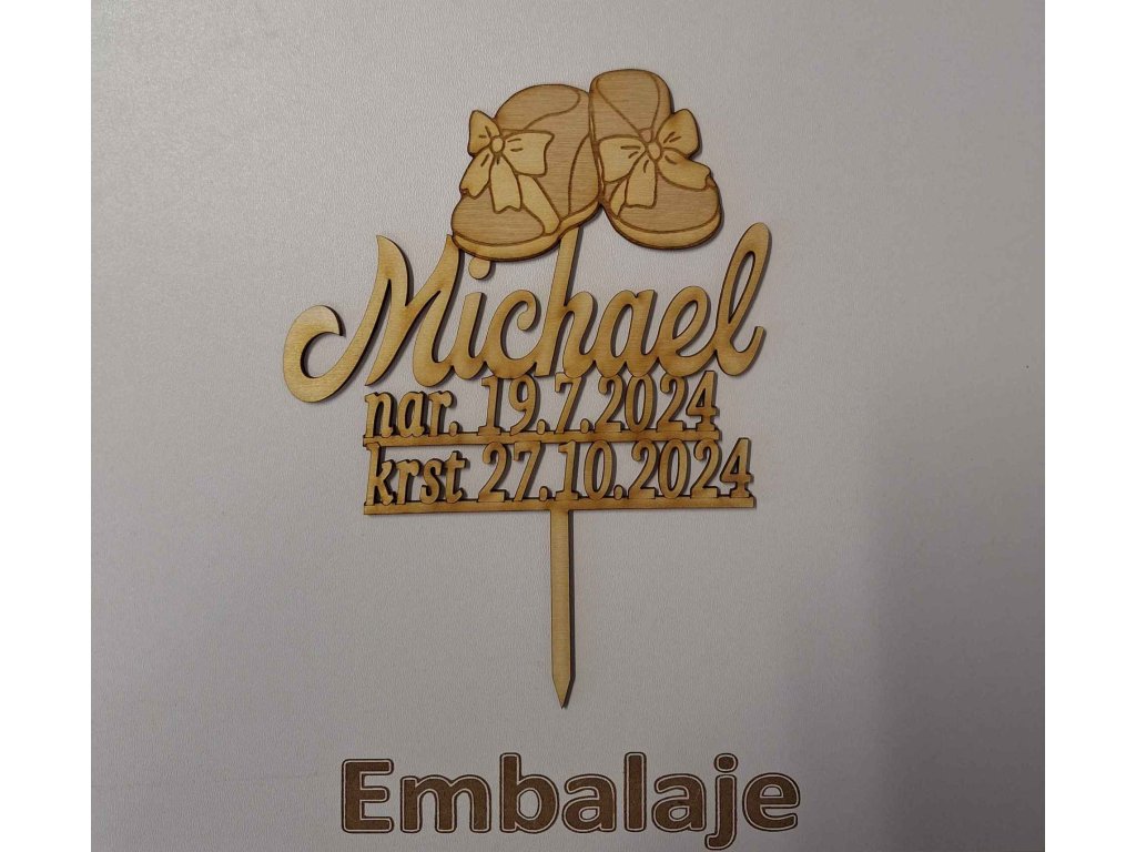 Drevený zápich Krstiny Meno/Dátum/Papučky