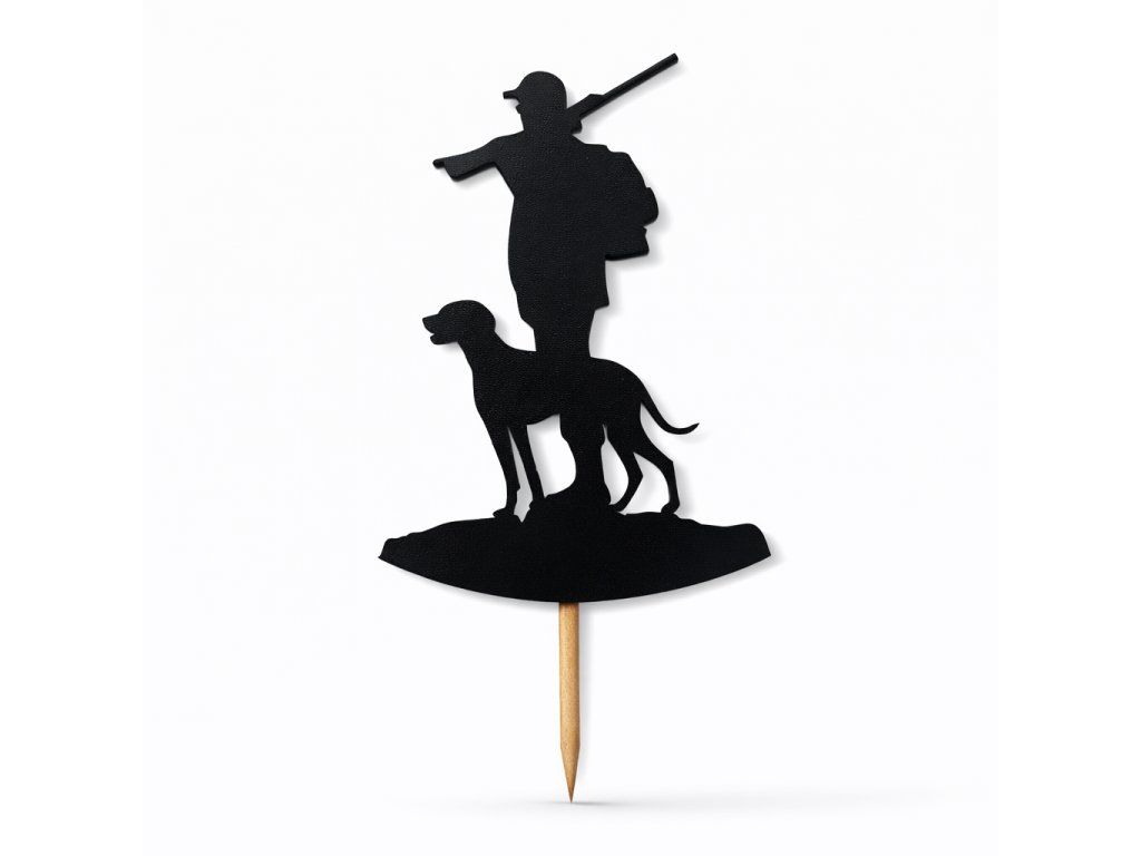 Drevený zápich poľovník so psom